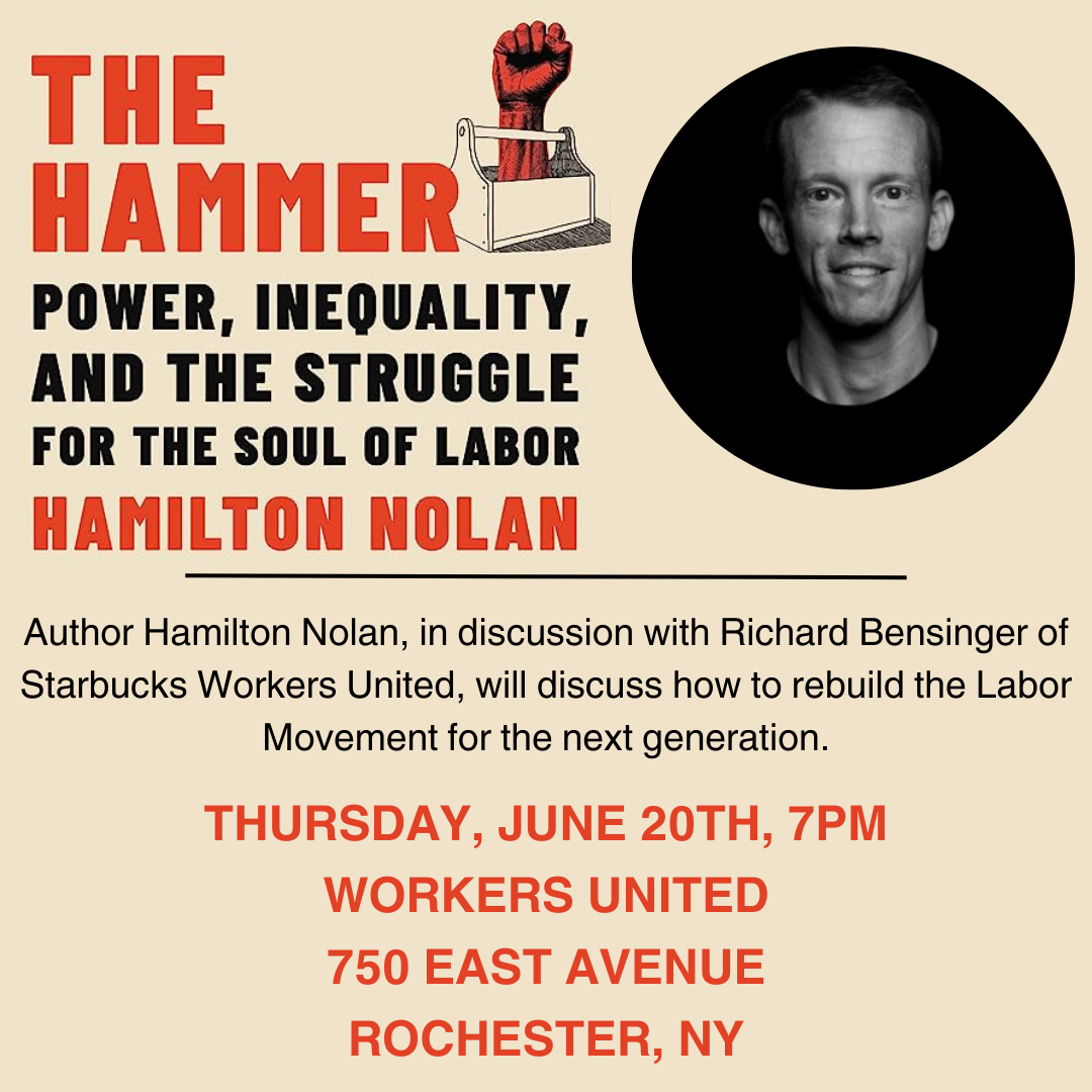 This talk is hosted by Workers United, Rochester Regional Joint Board. We hope that all interested union members and activists will join us for an informative conversation.